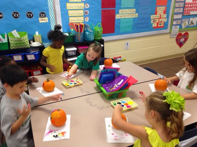 Today we took our field trip to the farmers market to explore using our 5 senses! When we got back to school we had fun painting pumpkins and eating homemade applesauce!!! If any parents that joined us on our field trip have any pictures to share, please email them to me and I will post them on our blog!!!